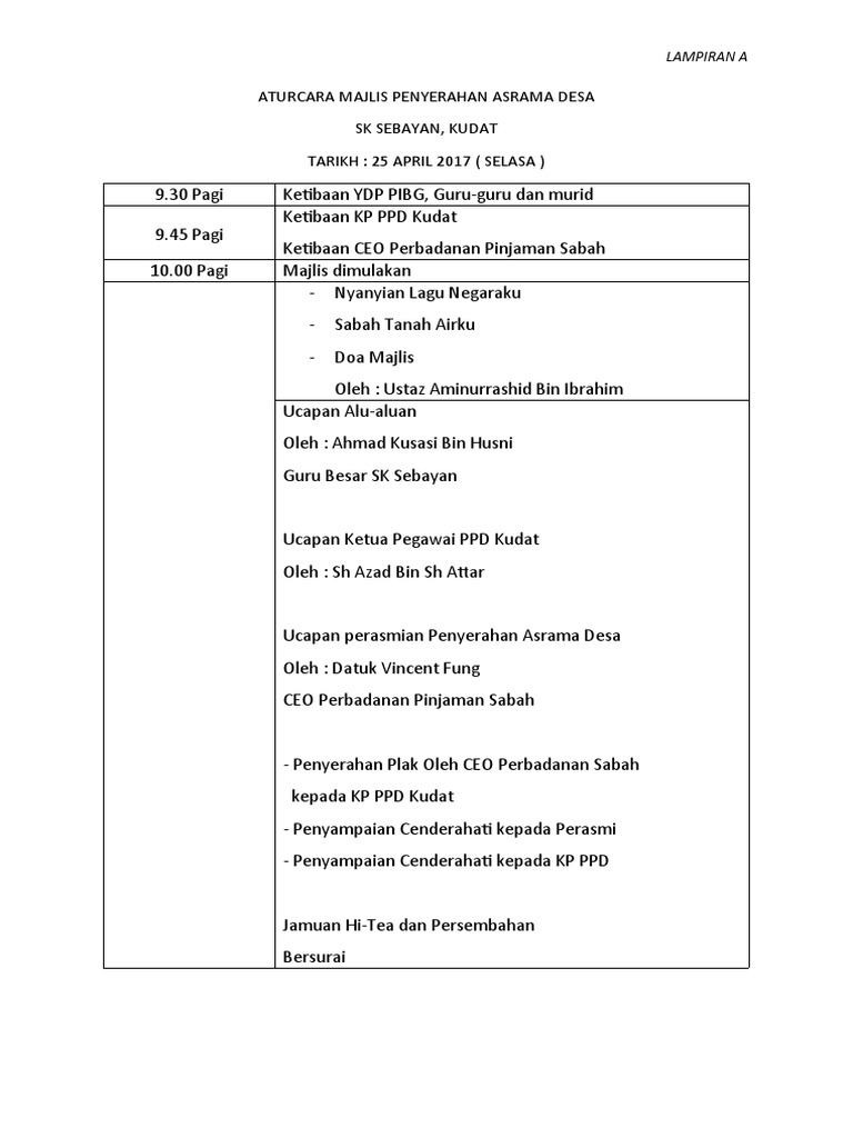 Aturcara Majlis Penyerahan Asrama Desa Pdf